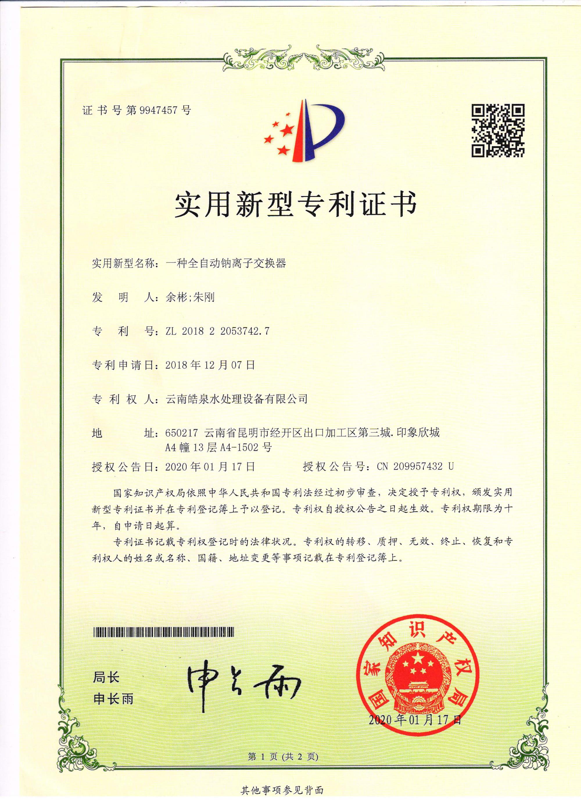 2009年04月: 公司負(fù)責(zé)人 余 彬 和技術(shù)總工 朱 剛 在昆明組建成立 云南皓泉水處理設(shè)備有限公司; 2009年08月: 云南皓泉水處理設(shè)備有限公司在重慶投資參股生產(chǎn)循環(huán)水藥劑; 2009年11月: 云南皓泉水處理設(shè)備有限公司在成都投資參股成立水處理設(shè)備及環(huán)保設(shè)備生產(chǎn)基地; 2010年01月: 云南皓泉水處理設(shè)備有限公司被授予昆明市誠信企業(yè); 2010年02月: 云南皓泉水處理設(shè)備有限公司在上海投資參股生產(chǎn)反滲透藥劑; 2011年01月: 云南皓泉水處理設(shè)備有限公司被認(rèn)定授予高新技術(shù)企業(yè); 2017年05月: 云南皓泉水處理設(shè)備有限公司成立官渡分公司; 2017年05月: ----------------------職位描述