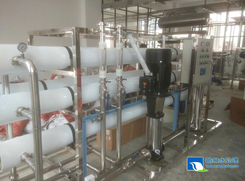 反滲透膜設備利用RO膜的高脫鹽性能能徹底除去過去純水制造工藝中較難去除的TOC,SiO2、微粒子及細菌。同時,又徹底省掉離子交換再生酸堿消耗、免除酸堿排污污染及避免離子交換層中細菌、有機物的二次污染。經(jīng)反滲透處理后的水,能去除99%以上的溶解性固體,99%以上的有機物及膠體,幾乎100%的細菌。
