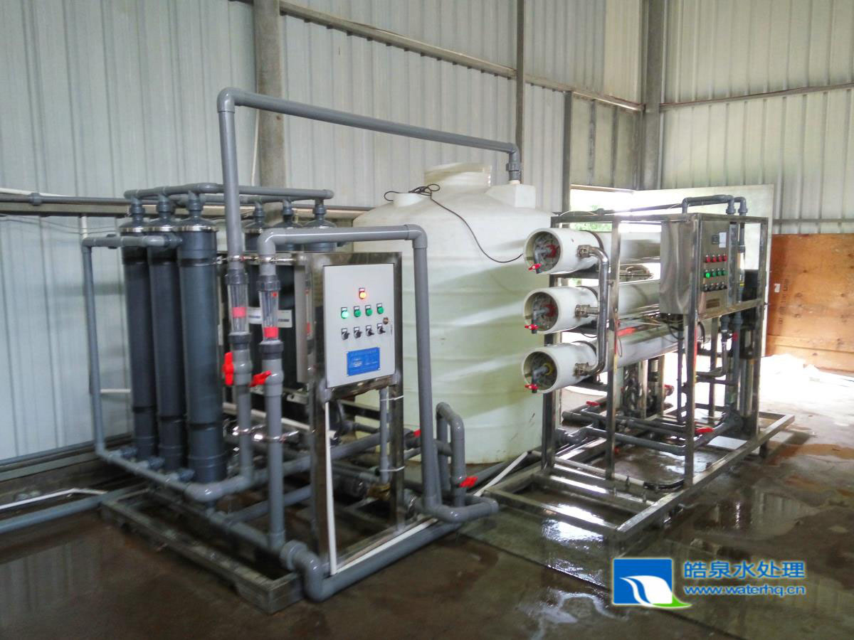 原水→原水泵→加絮凝劑裝置→石英砂過濾器→活性炭過濾器→軟化器→保安過濾器→超濾設備→中間水箱→一級反滲透設備→純水箱