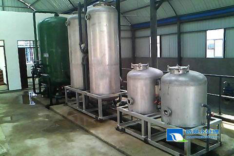 該系統(tǒng)采用工藝流程為:原水→石英砂過濾器→軟水器→水箱