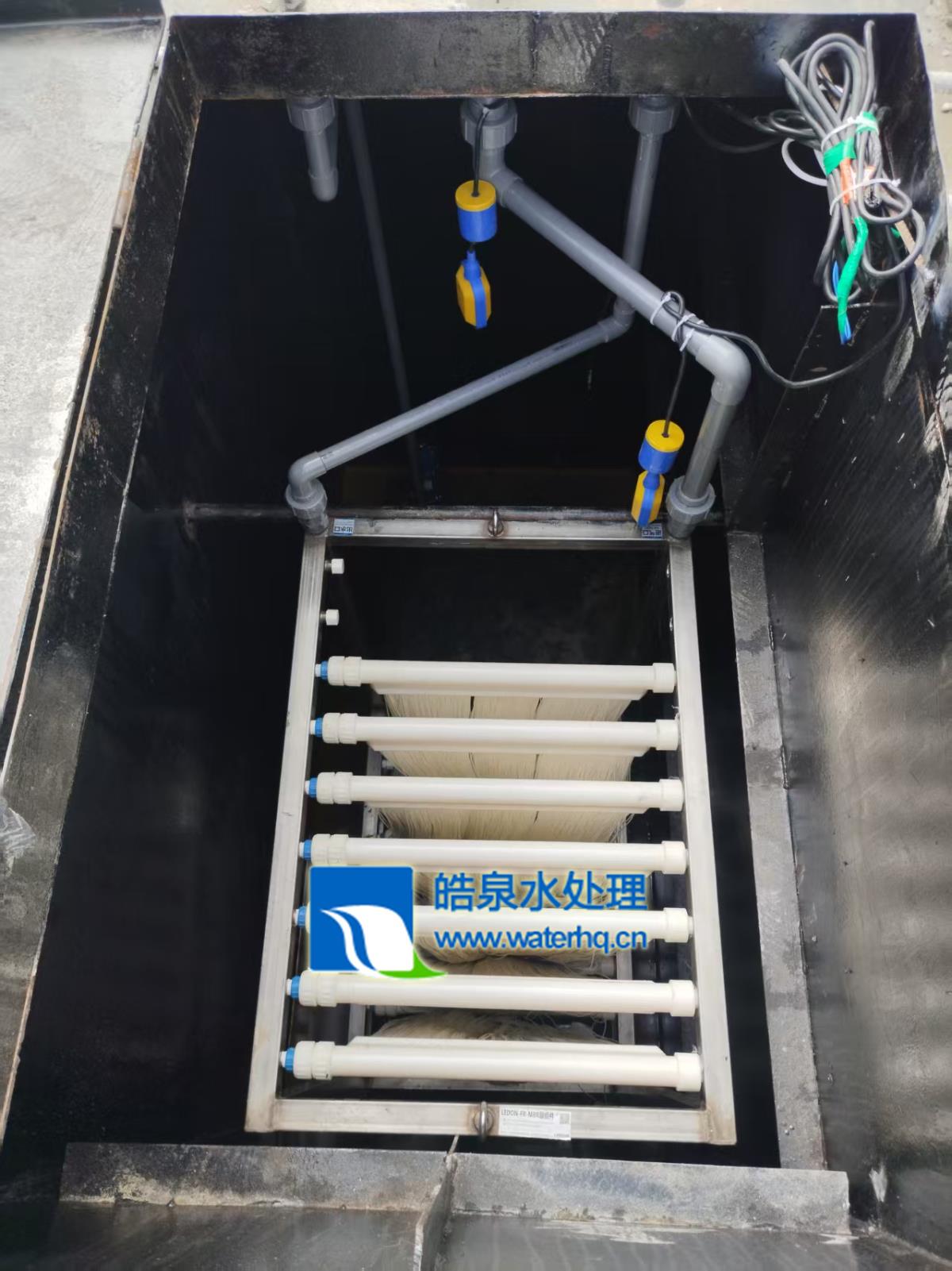 將MBR膜組件直接安置在MBR池中,通過泵的負(fù)壓抽吸作用得到膜過濾出水。由于膜浸沒在反應(yīng)器的混合液中,因此也稱為浸沒式或淹沒式MBR。一體式MBR具有工藝簡單、運(yùn)行費(fèi)用低和出水水質(zhì)好等優(yōu)點(diǎn)。在生物反應(yīng)器內(nèi)放置0.1微米的微/超濾膜,可過濾截留全部膠體污染物質(zhì)與細(xì)菌、大部分病毒,并通過活性污泥消化分解污染物質(zhì),膜產(chǎn)水優(yōu)質(zhì)穩(wěn)定,只需較少的消毒劑用量就能消滅剩余的病毒。