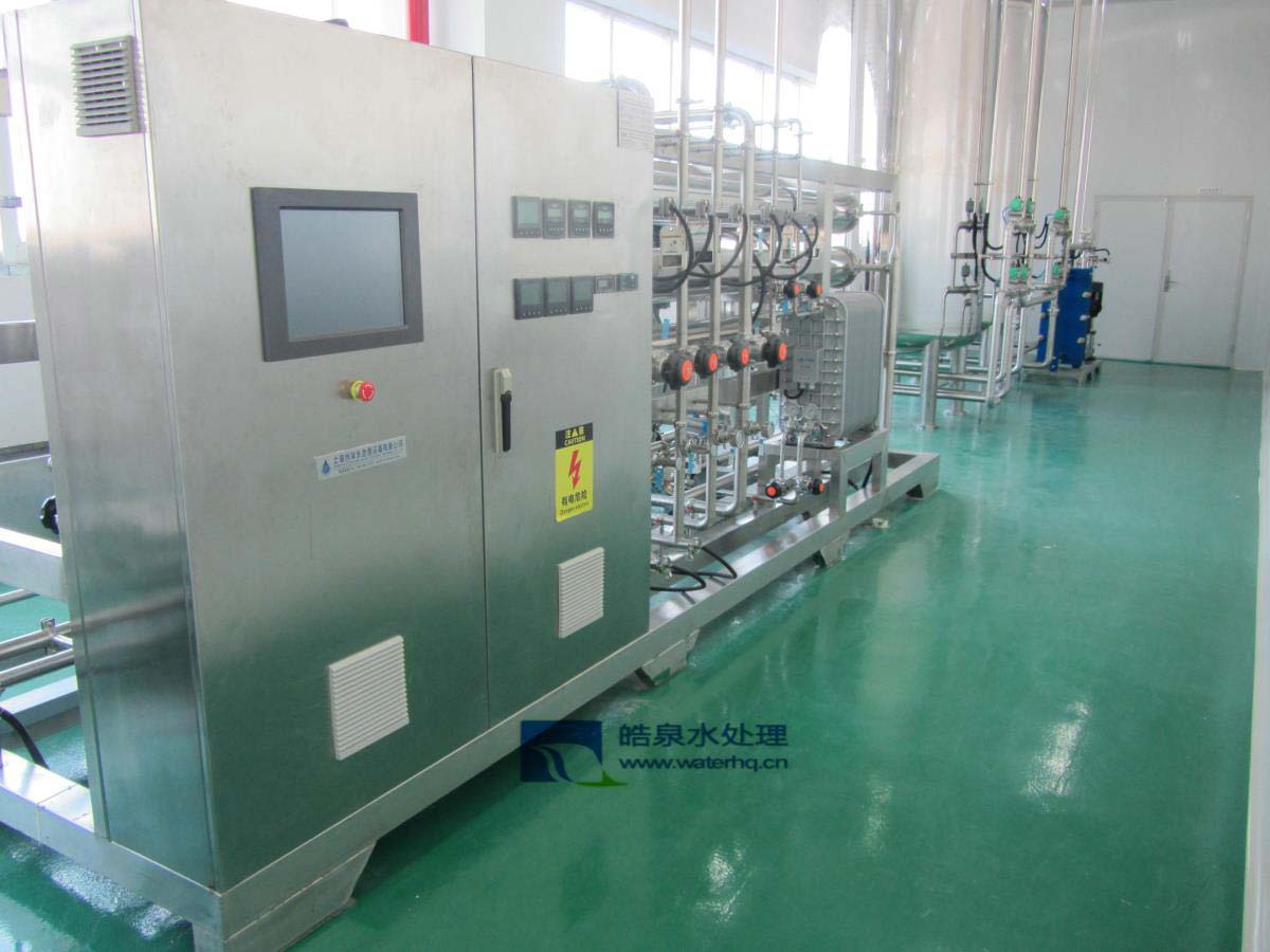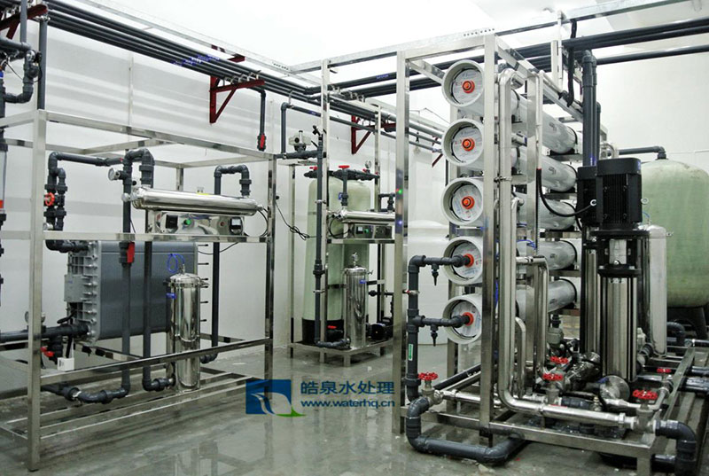 采用預(yù)處理、反滲透技術(shù)、超純化處理以及后級(jí)處理等方法,將水中的導(dǎo)電介質(zhì)幾乎完全去除,又將水中不離解的膠體物質(zhì)、氣體及有機(jī)物均去除至很低程度的水處理設(shè)備。
